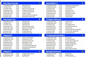 体育资讯08月30日讯 欧足联官方公布欧冠联赛阶段赛程,欧冠正赛联赛阶段共36队,每支球队进行4主4客8场比赛。联赛阶段结束后,前8名直接晋级淘汰赛,第9名-第24名将参加淘汰赛附加赛,具体对阵由抽签决定。