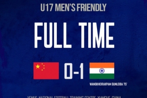 国少队员们对印度队的提速显然缺少准备,完全跟不上对手的转换节奏,尤其是对手由守转攻,相比上半时更快也更坚决。第26分钟,印度队在中场就地反抢得手、从国少队队员脚下抢获球权后马上发起快速反击,一脚传球直接打国少身后,从左前卫换位到右前卫位置上的20号冈雷巴得球后晃过出击的门将秦子牛,然后面对空门轻松一脚,1-0!印度队取得领先。