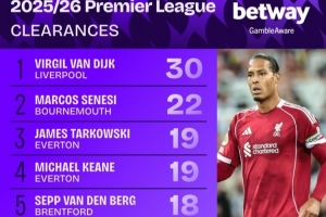 本赛季英超解围榜:
