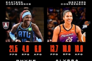 体育资讯9月3日讯 今日WNBA官方宣布,亚特兰大梦想球员莱恩-霍华德、凤凰城水星球员艾莉莎-托马斯分别当选第13周东西部周最佳球员。