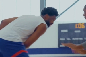 体育资讯9月10日讯 今日,76人官方推特晒出一组恩比德和乔治的训练片段。
